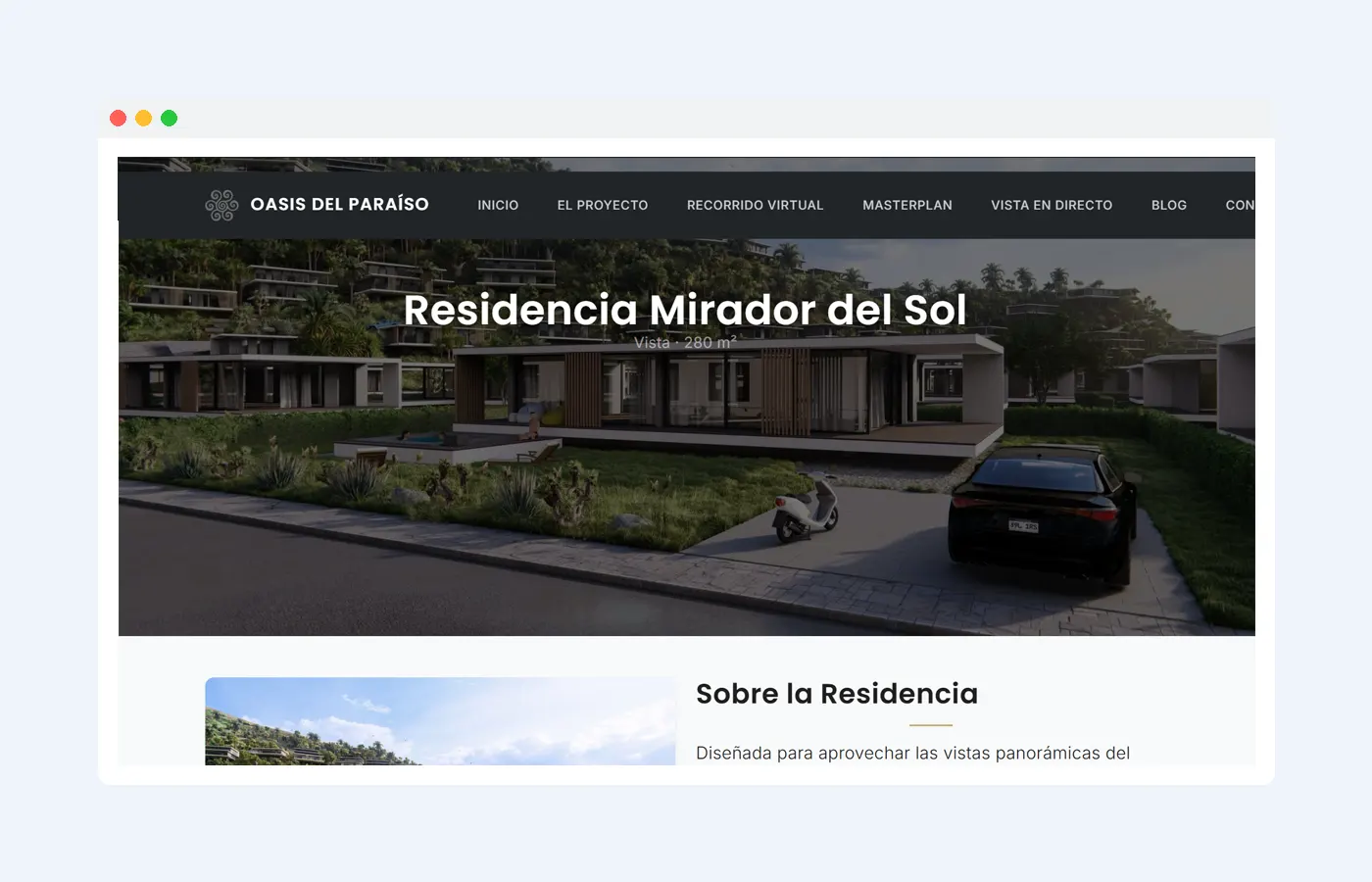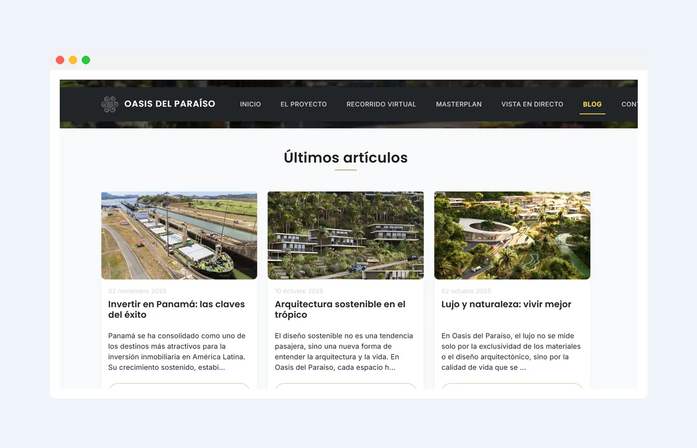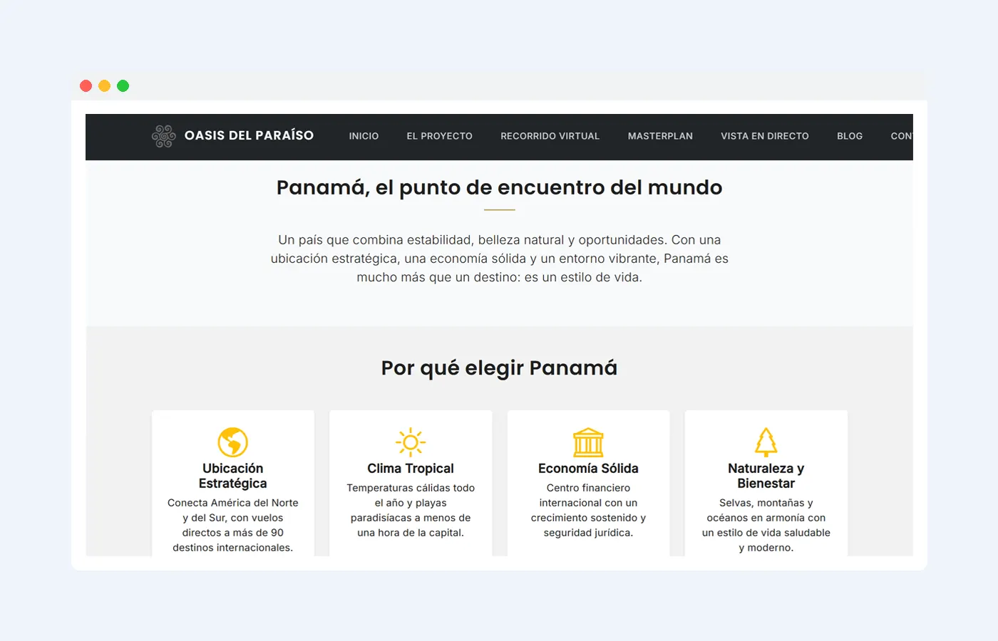 Plataforma web para una urbanización residencial de lujo en Panamá.